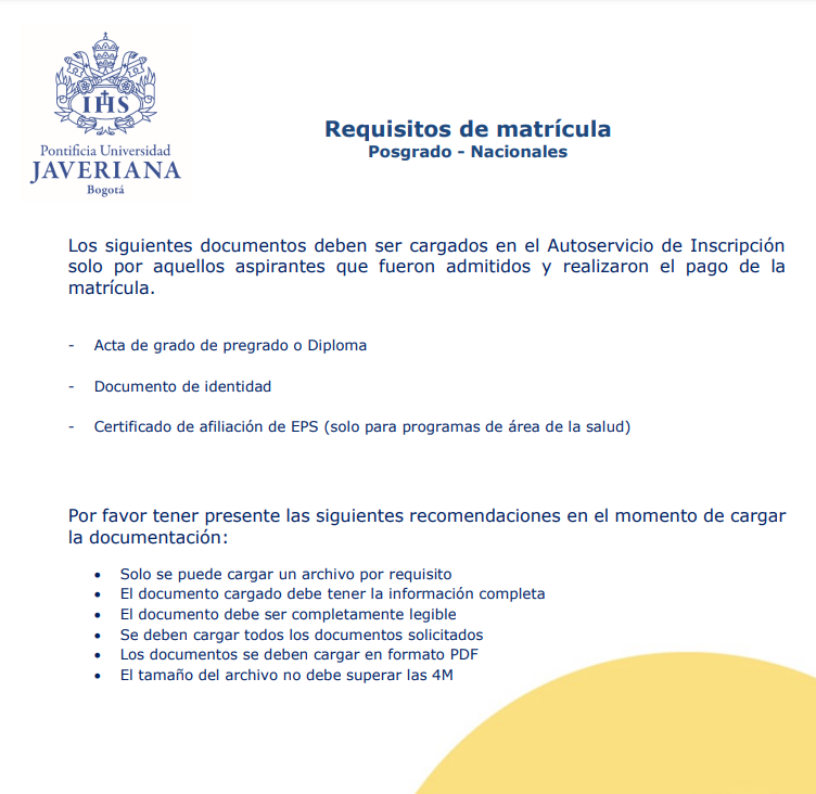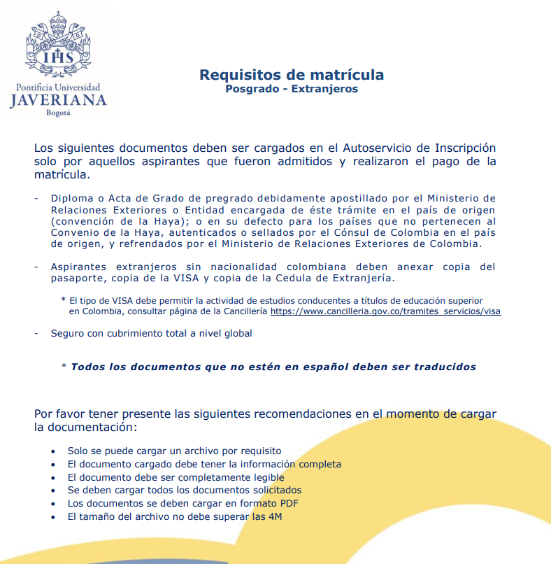 • Requisitos para Matricularse en Posgrado (Colombianos)