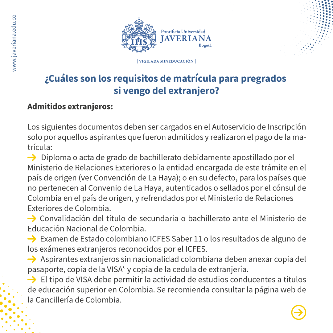 • Requisitos para Matricularse en Pregrado (Extranjeros)